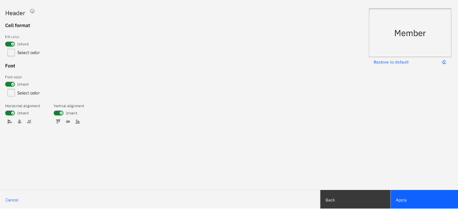 When we click Next we have the option of applying formatting to the All level member Header cells as well, but for now we’ll click Apply:
