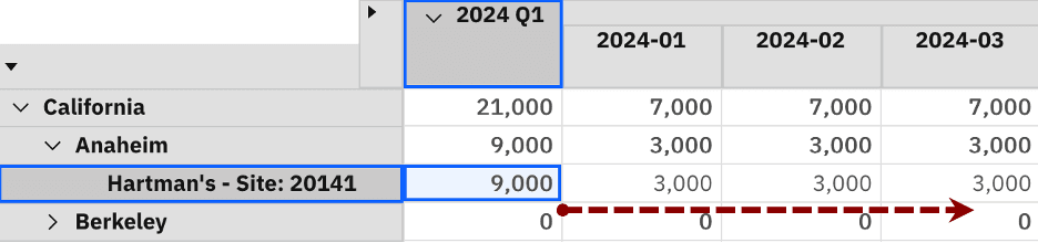 If these lowest cells are completely empty, the value will be spread equally across them. If the cells are already populated the value will be spread proportionally. This is a fantastic ability and can save tons of time.